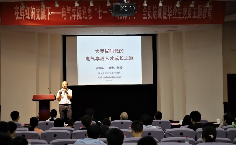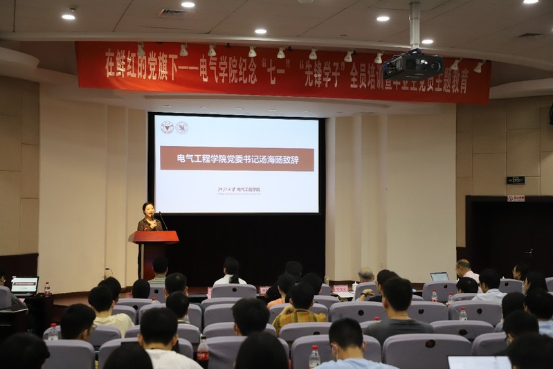 2020年6月23日下午,在鲜红的党旗下——电气学院纪念“七一”“先锋学子”全员培训暨毕业生党员主题教育在mg4355线路检查官网玉泉校区邵科馆117报告厅圆满举办。电气学院党委书记兼副院长汤海旸老师,校党委学生工作部副部长潘贤林老师,电气学院党委副书记陈敏老师出席会议。