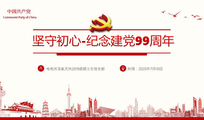 2020年7月10日晚7点,电机所及航天所2019级硕士生党支部邀请结对党委委员沈建新老师参加支部活动,活动于教二313顺利举行。本次结对活动由党支部书记谭嘉主持,主题为“坚守初心——纪念建党99周年”。