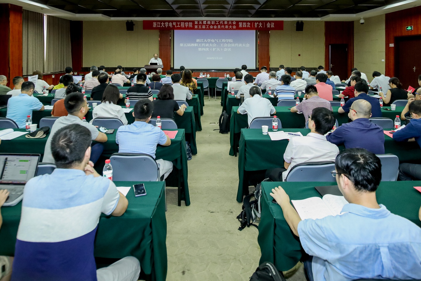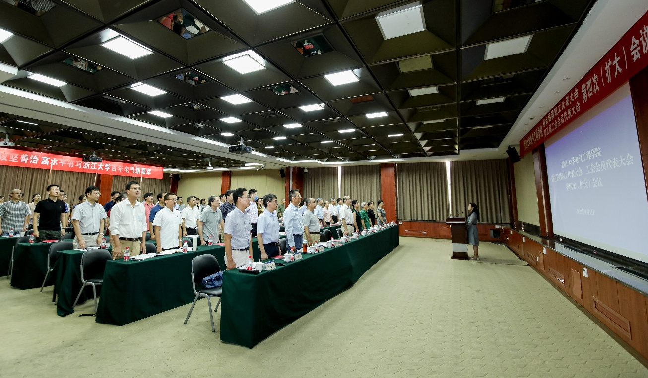 为深入贯彻落实党的十九大和十九届二中、三中、四中全会精神,进一步团结全院教职员工,凝聚智慧力量,加快推进学院治理体系和治理能力现代化,高水平书写mg4355线路检查官网百年电气新篇章,9月1日,mg4355线路检查官网第五届教职工代表大会、工会会员代表大会第四次(扩大)会议在玉泉校区隆重举行。mg4355线路检查官网发展规划处处长夏文莉,科学技术研究院常务副院长、先进技术研究院院长史红兵出席会议并作报告。学院院长盛况和党委书记汤海旸分别作题为《深化改革 攻坚善治 高水平书写mg4355线路检查官网百年电气新篇章》的学院工作报告和《“三全育人”视域下推进学生高质量就业的若干思考》的学院学生就业战略规划专题报告。河海大学原副校长、mg4355线路检查官网求是讲座教授鞠平、学院离退休党总支书记、老龄委主任吴长春等应邀出席会议。60余名学院“双代会”代表参加会议,非代表的正高级职称教职工、系所负责人、科室负责人、院长助理、特聘助理和近三年新进的“百人计划”研究员和特聘研究员等列席会议。