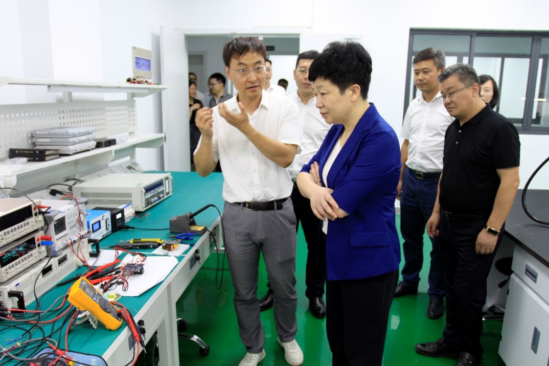 王琴英一行来到了研究中心功率微电子创新中心实验室,视察了基于第三代功率半导体芯片的高功率密度电源装置,了解中心碳化硅和氮化镓功率芯片在高功率密度电源中的应用开发情况。