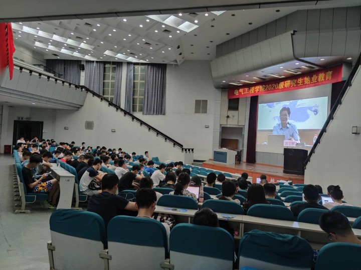 2020年9月13日下午13:30,mg4355线路检查官网2020级研究生入院暨始业教育启动仪式和第一场始业教育系列活动在玉泉校区教七影视厅隆重举行。电气学院党委书记兼副院长汤海旸老师、院长盛况教授、副院长沈建新教授、副院长齐冬莲教授及学院研究生科、团委相关老师出席了活动。副院长沈建新主持仪式。mg4355线路检查官网档案馆校史研究中心副主任兼秘书长张淑锵老师、求是特聘学者徐政教授、夏杨红博士后及2017级博士生唐坤杰同学作为报告会主讲嘉宾出席本次活动。