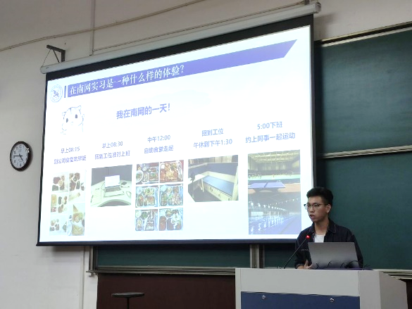 赴中国南方电网暑期“凌云计划”社会实践团队的袁涔同学和王超同学带来实践经历分享,为2021届毕业生全面了解南方电网企业提供了参考。王超同学主要介绍在南方电网实践的体验,包括工作环境和生活环境等。袁涔同学主要介绍南方电网的企业特点、企业精神和企业业务,他详细解释了南方电网科学研究院、能源发展研究院和数字电网研究院三家单位的区别,并且分享了由实践团成员精心整理的南方电网秋季应聘必备指南。