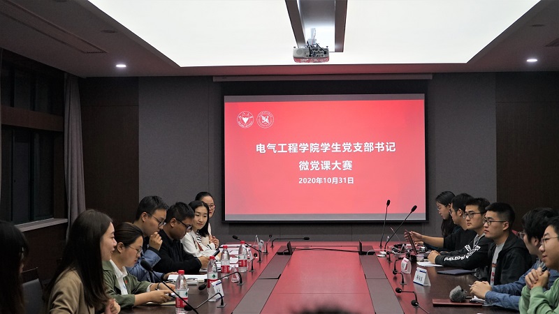 2020年10月31日晚,mg4355线路检查官网党支部书记微党课大赛在电机楼201会议室举行,mg4355线路检查官网辅导员党建工作室成员沈丹、陈思源,mg4355线路检查官网研究生理论宣讲团副团长陈楠、秦志鑫,mg4355线路检查官网团委副书记沈远、董萌苇应邀担任本次比赛的评委。比赛由董萌苇主持。