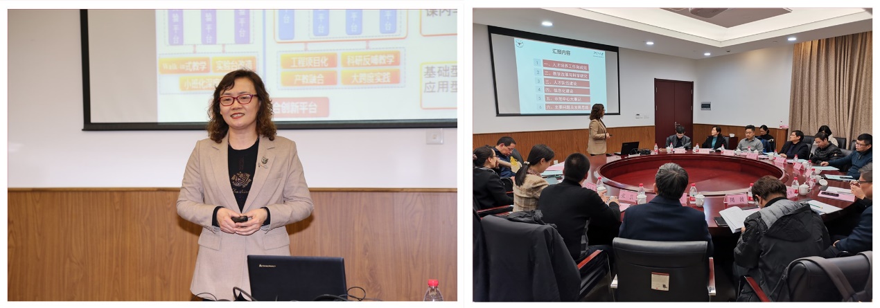示范中心副主任卢慧芬汇报了示范中心2020年度的具体运行情况。详细介绍了人才培养工作及成效、人才队伍建设、教学改革和科学研究、信息化建设和开放运行管理和示范中心年度大事等内容,并就示范中心目前存在的问题和后续建设思路进行了具体的说明。