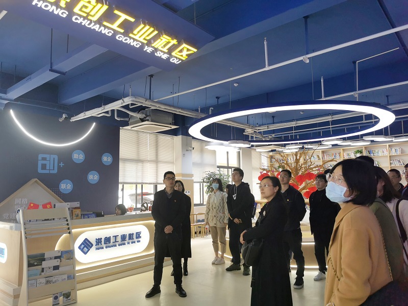 下午,党员们来到了嘉兴市秀洲区洪合镇——这是嘉兴唯一一个以革命先烈名字命名的地方。在这片红色的土地上,党员们首先参观了洪创工业社区,了解工业社区治理模式,也了解了当地政府对创新型企业和科技人员的支持。