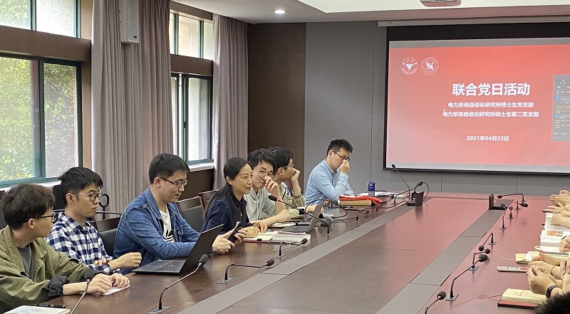 为深入贯彻落实习近平总书记在党史学习教育动员大会上的重要讲话精神,2021年4月22日,电力系统及自动化研究所博士生党支部和电力系统及自动化研究所硕士生第二党支部联合开展党日活动,并有幸邀请到同支部结对的学院党委书记汤海旸老师来为党员们讲党课。