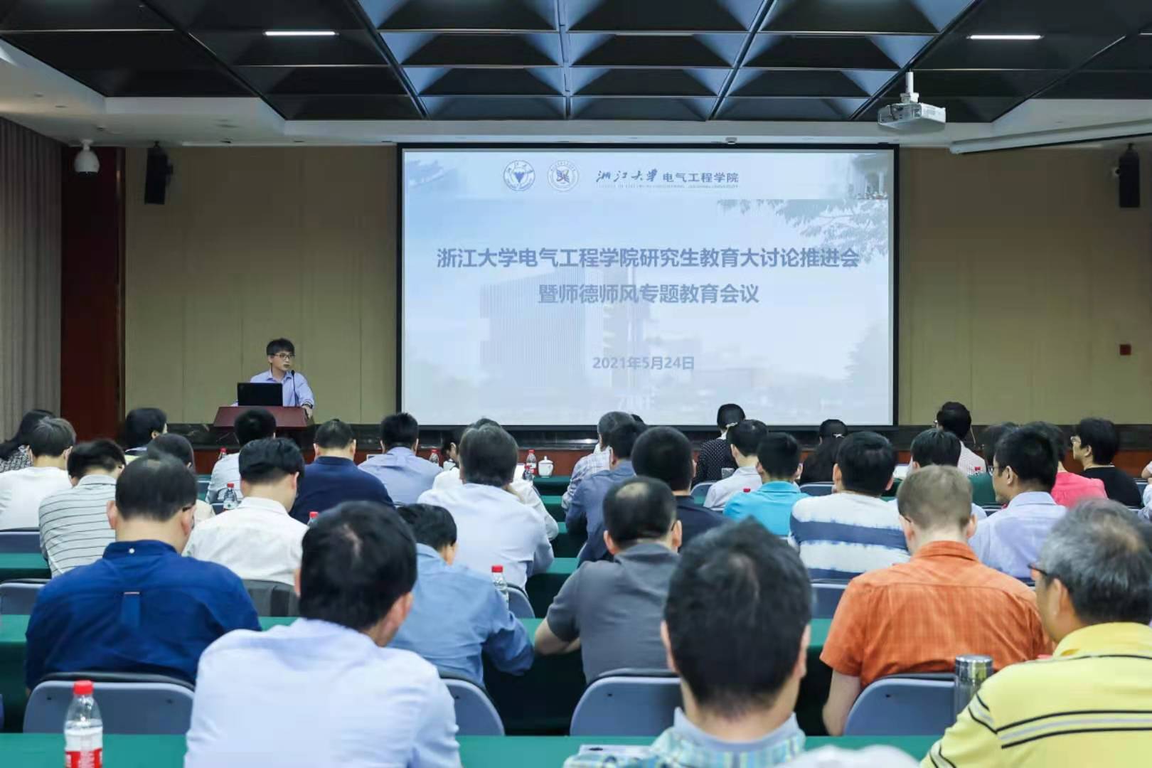 5月24日下午,mg4355线路检查官网研究生教育大讨论推进会暨师德师风专题教育会议在玉泉校区邵逸夫科学馆举行,学院班子成员、全体研究生导师、相关科室负责人等近90名教师代表参加此次会议。会议由学院副院长沈建新主持。