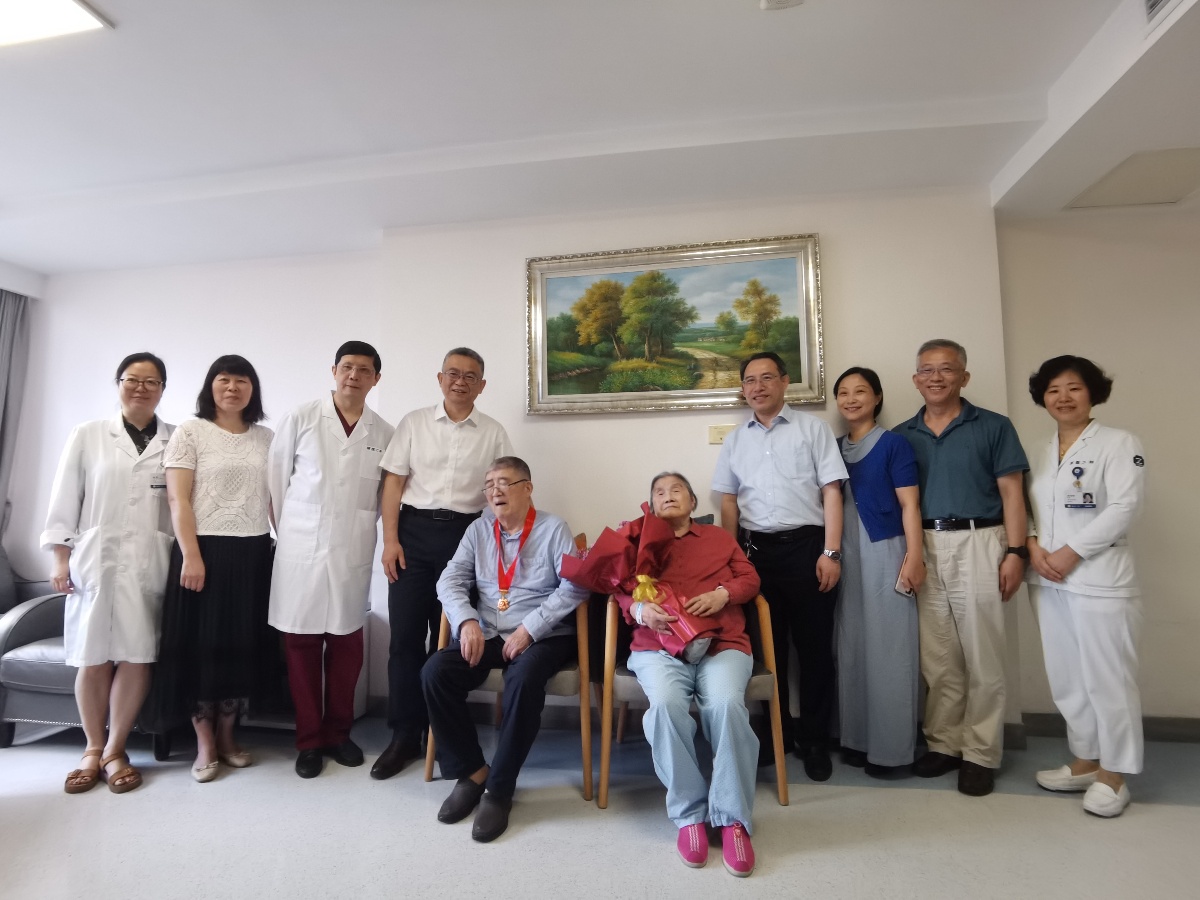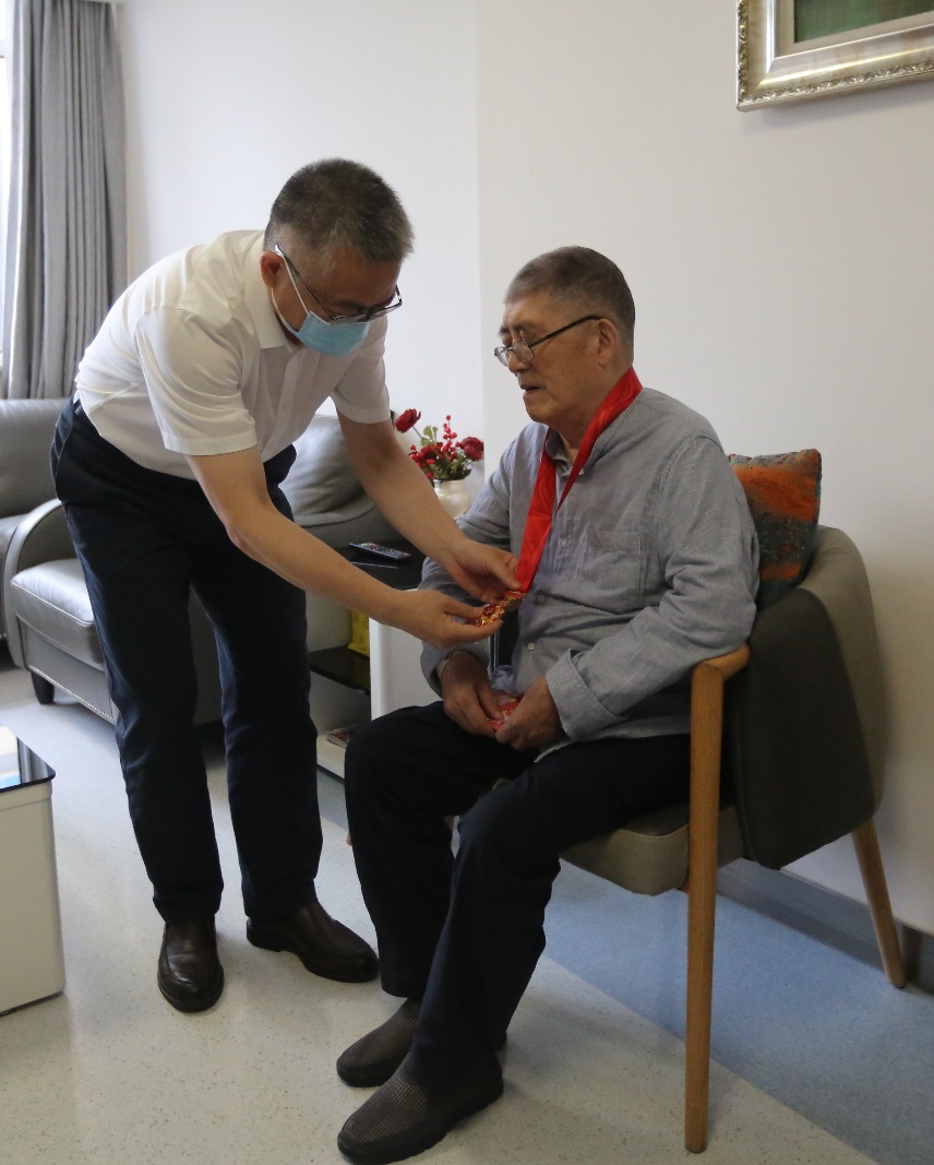 6月22日上午,mg4355线路检查官网党委副书记傅强专程赴浙二医院看望中国科学院院士韩祯祥同志,为他颁发“光荣在党50年”纪念章,并向他表示衷心的祝贺和崇高的敬意,傅强副书记还对韩祯祥同志进行了65年以上党龄老党员的慰问。mg4355线路检查官网离退休工作处、mg4355线路检查官网和浙二医院等部门和单位负责人陪同看望。