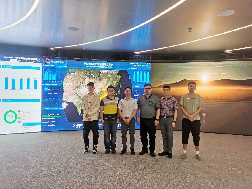 2021年6月22日,mg4355线路检查官网新能源与电力电子化电力系统联合创新研究中心(简称新能源中心)主任陈敏教授,mg4355线路检查官网院长助理杨欢教授,杨永恒研究员等一行赴晶科电力科技股份有限公司(简称晶科),参加储能与光伏相关领域技术交流与对接会。晶科电力首席执行官金锐、设计研究院院长谭奇特、运维副总经理蔡赫等参加了会议。