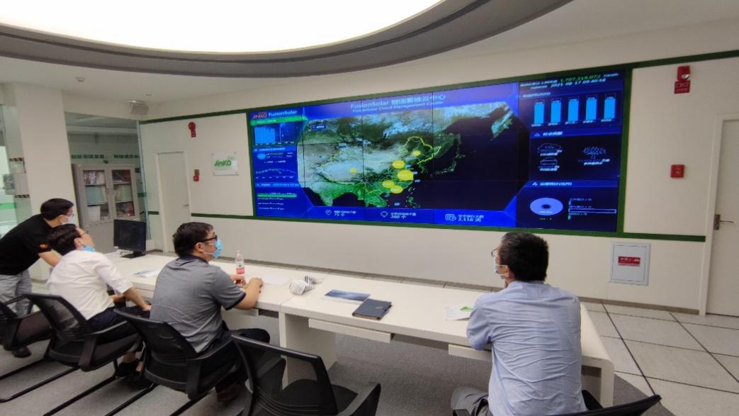浙大一行参观了晶科集控中心,王建珍详细介绍了晶科的光伏智能运维系统。