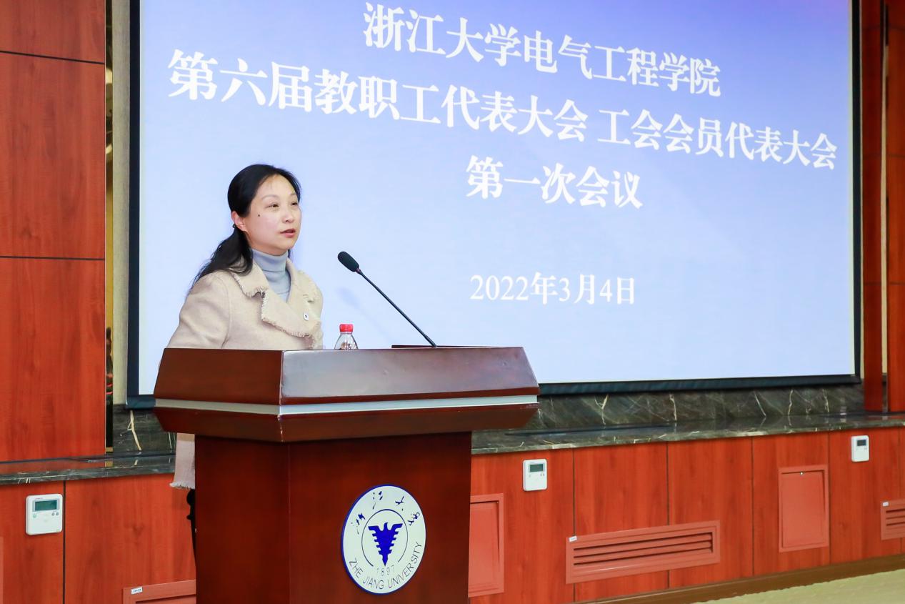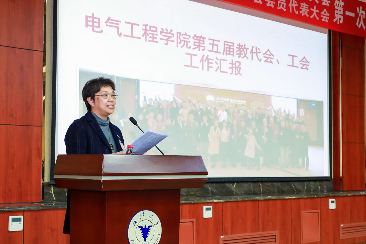 学院第五届工会委员会主席章玮作题为“凝聚共识促和谐 为‘双一流’建设保驾护航”的工会工作报告,回顾四年来学院第五届教代会、工会工作情况。她表示,学院教代会、工会认真贯彻组织群众、宣传群众、教育群众、引导群众的宗旨,以民主管理、开拓创新、勤勉服务为工作理念,以抓好重点、提升常规为工作思路,围绕电气“青蓝E家”、建设电气人暖心的“家”等方面取得了一定的成绩,为学院高质量发展做出了积极贡献。