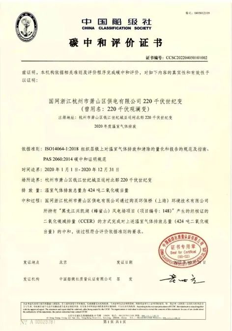 碳中和权威认证证书